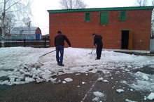 Сегодня в нашей школе прошел субботник. Сотрудники школы очистили территорию от мусора и раскидали снег.