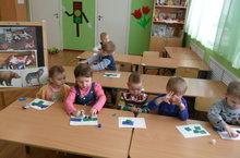 Воспитанники младшей группы рассматривали картины диких животных, отвечали на вопросы педагога, провели дидактическую игру "Дикие животные" и сделали аппликацию " Мой веселый грузовик"