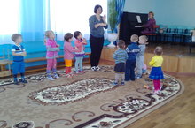 Дети младшей группы учаться танцевать. С целью систематического развития и усовершенствования движений применяются разнообразные музыкально- ритмические упражнения, игры, танцы, с помощью которых осуществляется музыкальное воспитание детей этого возраста.