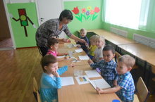 В младшей разновозрастной группе было проведено занятие по художественно – эстетическому развитию - рисование красками на тему: «Красные и зеленые яблоки на тарелочке». Цель данного занятия: продолжать обучать работе с кистью, учить рисовать круглые предметы, закрепить основные цвета. Провела: Хайрутдинова Т.Н.