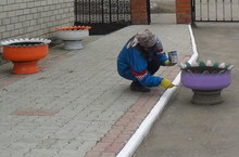 -Побелка зданий на территории гаража, уличного туалета, тротуаров, деревьев.