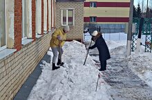 Воспитатели нашего детского сада вышли на очистку отмостков, на территории детского сада.