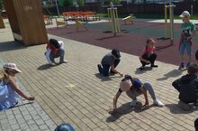 В сквере ребята поиграли в подвижные игры, покатались на качелях, позанимались на тренажерах.
