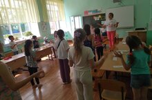 Сегодня в пришкольном лагере «Город Детства» утро началось с веселой зарядки. После разминки ребята посмотрели интересный мультфильм про Петра 1 и отвечали на вопросы. Также для детей сегодня был организован «Детский час» ,где были проведены экологическая экскурсия и викторина «Цветы нашего края». В отрядах ребята делали аппликации на тему «Экология»