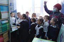 Библиотекарь школы Ольга Николаевна провела экскурсию для 1-х класов,рассказала как устроена библиотека,какие есть книги и журналы