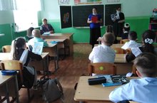 В рамках республиканского профилактического мероприятия "Внимание -дети!" сегодня была проведена акция "Помоги первоклассниу безопасно перейти дорогу в школу".Цель акции - помочь первоклассникам адаптироваться к школьной жизни и закрепить их навыки безопасного поведения на дорогах. В начале мероприятия оряд ЮИД провели профилактическую беседу с учащимися и вручили детям буклеты.