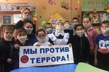 В рамках месячника по безопасности , учащиеся 4а класса посетили районную библиотеку, где сотрудники провели беседу на тему "Мы против террора!"