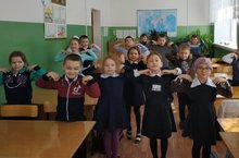 Сегодня с утра на улице был организован флешмоб «Утренняя подзарядка», в рамках Всероссийской эстафеты Здоровья.