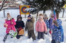 В детском саду прошла акция "Кормушка" по изготовлению кормушек и организации подкормки птиц. Целью акции - является привлечение школьников и воспитанников к активности по охране окружающей среде и бережному отношению к живой природе. Дети с родителями изготовили кормушки из подручных средств, а воспитанники вместе с воспитателями на прогулке повесили их и наполнили хлебом и зерном.