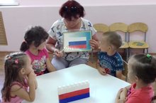 Бүген 22 авгут көнне бакчабызда Дәүләт флагы көне уңаеннан "Россия флагы - безнең горурлыгыбыз!" дигән темага әңгәмә үткәрелде. Максат: балаларны Россия флагы тарихы белән таныштыру һәм аларда патриотик хисләр тәрбияләү. Балалар флагның килеп чыгу тарихына кагылышлы һәм Дәүләт символлары турында кызыклы фактлар белделәр. 22.08.2019