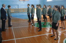 Традиционно ко Дню Защитника Отечества в нашей школе проводится смотр строя и песни. Все классы во главе с командирами выходят торжественным маршем на общее построение под музыку (военный марш).