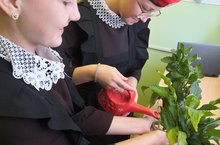 В школе прошла акция "Капля жизни", через акцию мы можем символически напоить всех тех, кого уже с нами нет-через полив цветов и кустов.