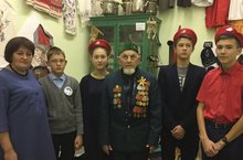 Сыйныф сәгате бүген бик эчтәлекле үтте. Җиңү волонтерлары һәм Юнармеецлар кунакка Бөек Ватан сугышы ветераны Зарипов Хәниф Зариф улын чакырдылар. Волонтерлар ветеранга сугыш турында сораулар әзерләгән иделәр, аксакал әлеге сорауларга җавап бирде, укучыларга бүгенге мул тормышның кадерен белергә нәсыйхәт бирде. Аның өчен башлангыч сыйныф укучылары шигырь һәм җырлар әзерләгән иделәр. Соңыннан волонтерлар тарих укытучысы Каримова Роза Сабирҗан кызы белән берлектә ветеранны мәктәп музее белән таныштырдылар. Очрашу эчтәлекле, вакыйгаларга бай булды.