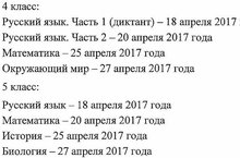 График проведения ВПР в 4, 5 классах 31.03.2017