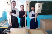 Учащиеся школы на уроках технологии изготавливают скворечники для школы и для продажи.