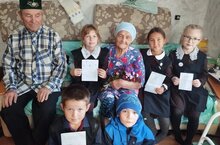 Учащиеся начальных и 6, 9 го классов поздравляют односельчан с Международным днем пожилых людей.