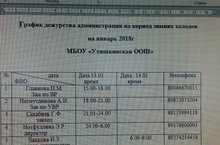 В связи с резким похолоданием был составлен график дежурства на период зимних холодов 12.01.2018