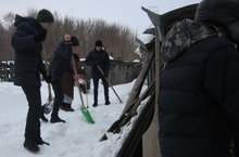 Бүген волонтерлар ярдәмгә мохтаҗ булган әбиләргә йорт тирәләрен кардан чистартырга ярдәм иттеләр.