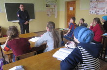 Полиция капитаны Тагиров Рамил Касым улы укучыларны юлда йөрү кагыйдәләре белән таныштырды һәм куркынычсызлык чараларын үтәмәүнең нинди һәлакәтләргә китерергә мөмкин икәнлеге турында сөйләде.