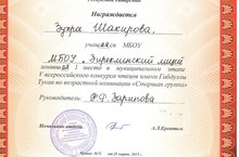 Ученица 9 класса Шакирова Зухра заняла 1 место в муниципальном этапе Всероссийского конкурса чтецов имени Габдуллы Тукая.