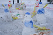 Учащиеся и коллектив учителей лицея слепили в центре села две композиции к Новому году: