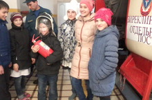 Начальник пожарной встретил учеников у входа в здание ПЧ. Он провел экскурсию по помещениям, рассказал ребятам о буднях пожарных, показал, как работают пожарные машины, напомнил номера телефонов вызова пожарной охраны.