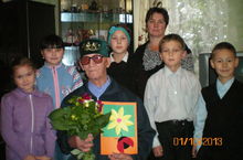 Учащиеся лицея поздравили своих подшефных пожилых с праздником, вручили им цветы и подарки сделанные своими руками.