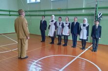 Сегодня учащиеся 6,8 классов участвовали в районном смотре-конкурсе строя и песни, посвященном Дню защитника Отечества среди 5-7 классов и 8-11 классов.
