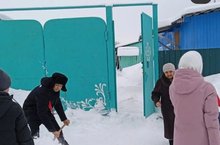 Лицейның Яшь гвардия отрядында торучы егетләр өлкән кешеләргә ярдәм итәргә керештеләр: өй алларын кардан чистарттылар.