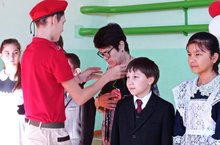 Өлкән укучылар җитәкчелегендә әзерләнгән концертта барлык сыйныф укучылары да катнаштылар, укытучыларга үз теләкләрен матур жырлары, шигырьләре аша җиткерделар.Барлык укучылар исеменнән "Яраткан укытучым" исемле медаль тапшырдылар.