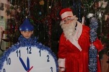 Отзвенел новогодний хоровод вокруг елки среди младших и средних классов. Были подведены итоги учебной четверти и ударники с отличниками получили за хорошую учебу сладкий приз - шоколадку. Также жюри подвело итоги новогодних конкурсов. Никто не остался без подарка и приза. И самыми лучшими костюмами были признаны костюм Токарева А. (часы). и Клявлиной В.(Малефисента).