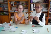 Учащиеся школы принимают участие в акции "Мост пожеланий" и готовят своими руками голубей. на которых будут написаны слова благодарности ветеранам войны и добрые пожелания.