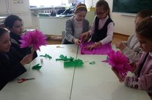 Учащиеся школы участвуют в акции региональной партии «Единая Россия» г. Нурлат по изготовлению гвоздик для ветеранов своими руками.