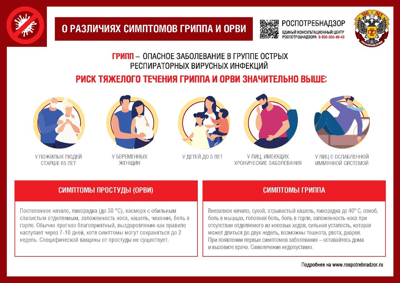 Территориальный отдел Управления Роспотребнадзора по Республике Татарстан (Татарстан) в Нурлатском, Аксубаевском, Алькеевском, Черемшанском районах предлагает ознакомиться с памяткой "О различиях симптомов гриппа и ОРВИ"