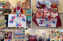 Ребята на альбомных листах обвели свои ладошки и, дорисовав ладошки в виде «человечков», вырезали фигурки. В итоге вместе собрали круг друзей.