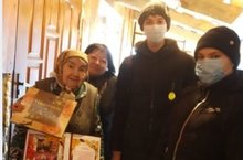 Поздравить со столь знаменательной датой пришли члены волонтёрского отряда "Волшебники". Пожелали ей здоровья, внимания родных и близких.
