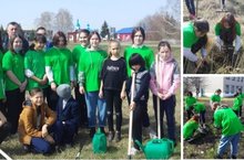 В этот день Экологический отряд "Озоновый зонтик" высадил ели и сосны на аллее памяти павшим воинам-односельчанам. -