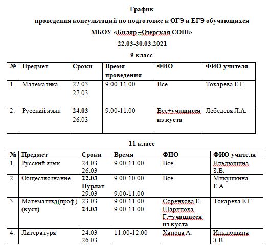 График консультаций по подготовке к ОГЭ и ЕГЭ