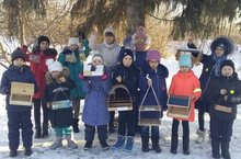 Сегодня члены кружка "Озоновый зонтик" развесили кормушки для птиц. Теперь птицам зимой не будет голодно, учащиеся начальных классов взяли над ними шефство.