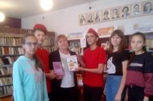 Юноармейцы в день библиотек дарят книги в школьную библиотеку.