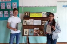 Сегодня день рождения великого русского поэта Алесандра Сергеевича Пушкина. Библиотекарь Кайзер И.Н. организовала выставку книг и провела с учащимися викторину по произведениям Пушкина.