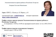 Каждый вторник с 14:00 до 18:00 прием осуществляется Уполномоченным по правам ребенка в Республике Татарстан (по предварительной записи):