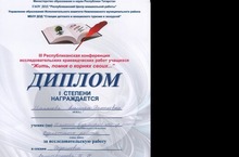 Поздравляем Маняпову Альмиру, ученицу 10 класса, за 1 место в III Республиканской конференции исследовательских краеведческих работ учащихся "Жить, помня о корнях своих...".