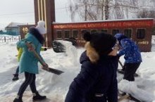 Хәрби-патриотик айлык кысаларында 7 нче сыйныф укучылары сугышта үлеп калган авылдашларыбыз хөрмәтенә салынган һәйкәл тирәсен кардан чистартып торалар.