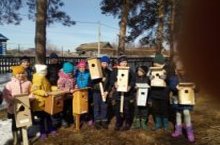 Дети вместе со взрослыми на весенних каникулах мастерили скворечники. Сегодня скворечники были прикреплены к деревьям на пришкольной территории. Развешивать скворечники помогали родители.