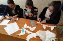 Учащиеся нашей школы приняли участие в акции "Голубь мира" и совместными усилиями сделали прекрасных голубей.