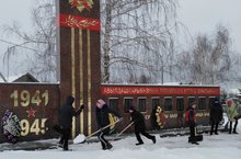 Юнармейцы очистили от снега территорию Памятника павшим в Великой Отечественной войне.