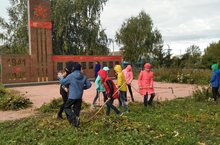 Учащиеся 6 класса организовали уборку на территории памятника погибшим воинам в ВОВ