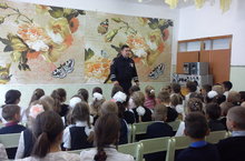 Педагог организатор Халитова Зария Вагиз кызы укучыларны “Россия мәктәп укучылары хәрәкәте” дип аталган яңа оешма эшчәнлеге белән таныштырды.