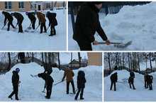 Волонтеры 8-10 классов вместе с учителем физкультуры Гималетдиновым Р.Р. и педагогом –организатором Курамшиной Л.Я. сооружали во дворе школы снежную любимицу детворы – горку.